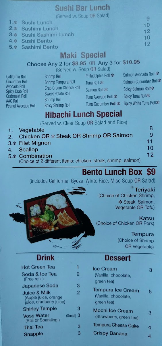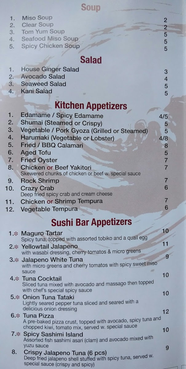 Any 6 regular rolls, Fancy Dragon Roll, King Tuna Roll, Rock 'N Roll and Hot Fancy Roll.